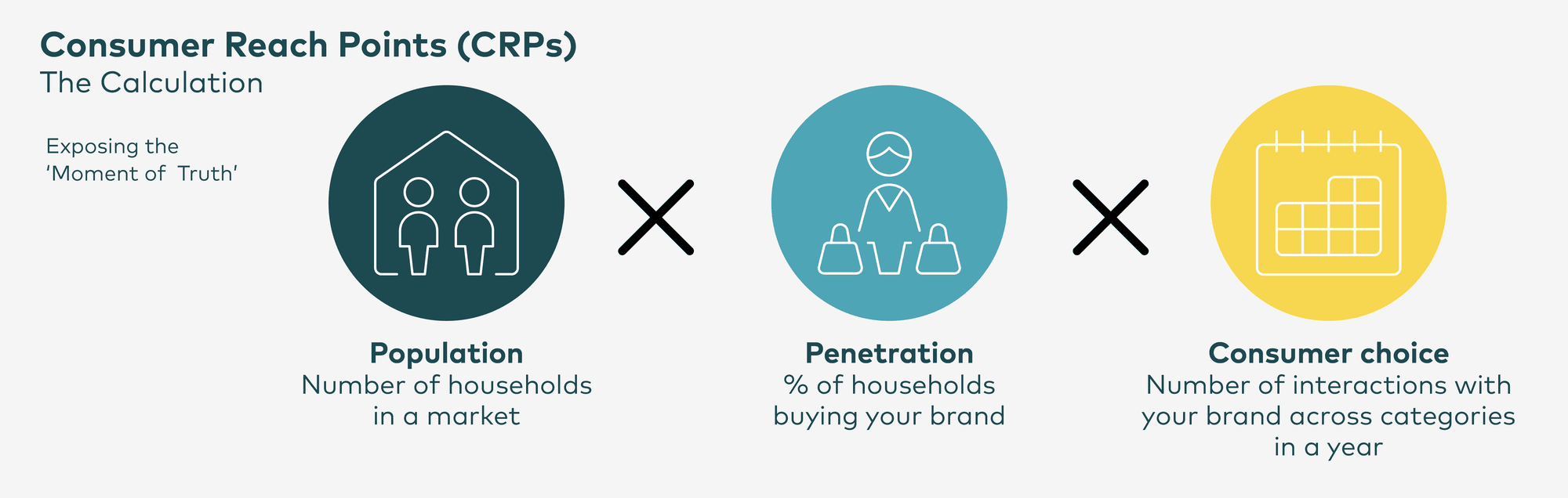 Worldpanel by Numerator’s unique Consumer Reach Points (CRP) metric measures every instance a shopper chooses a brand. It combines two critical dimensions: how many households choose it (penetration) and how often they choose it (frequency). This results in a CRP score that represents the size of the brand’s global footprint.