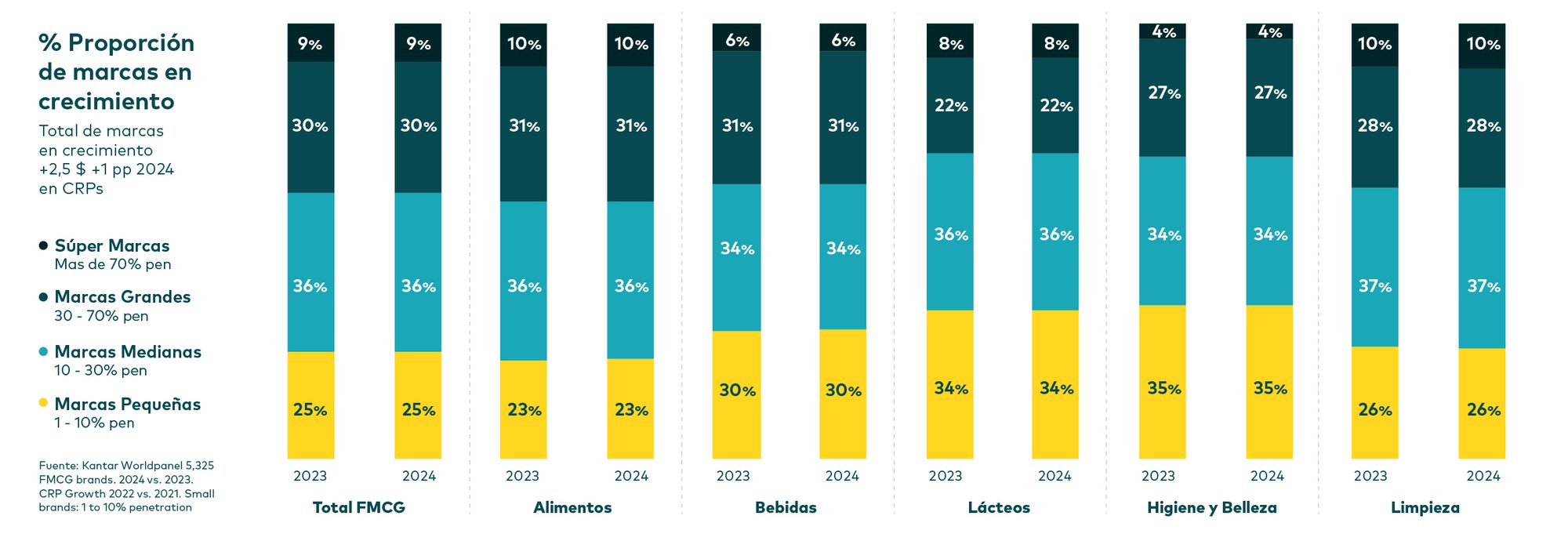 Como resultado, aunque la mayoría de las marcas en el ranking de Brand Footprint de este año han incrementado sus ventas en valor, la mitad está siendo elegida menos veces, lo que ha generado una caída en sus CRPs.