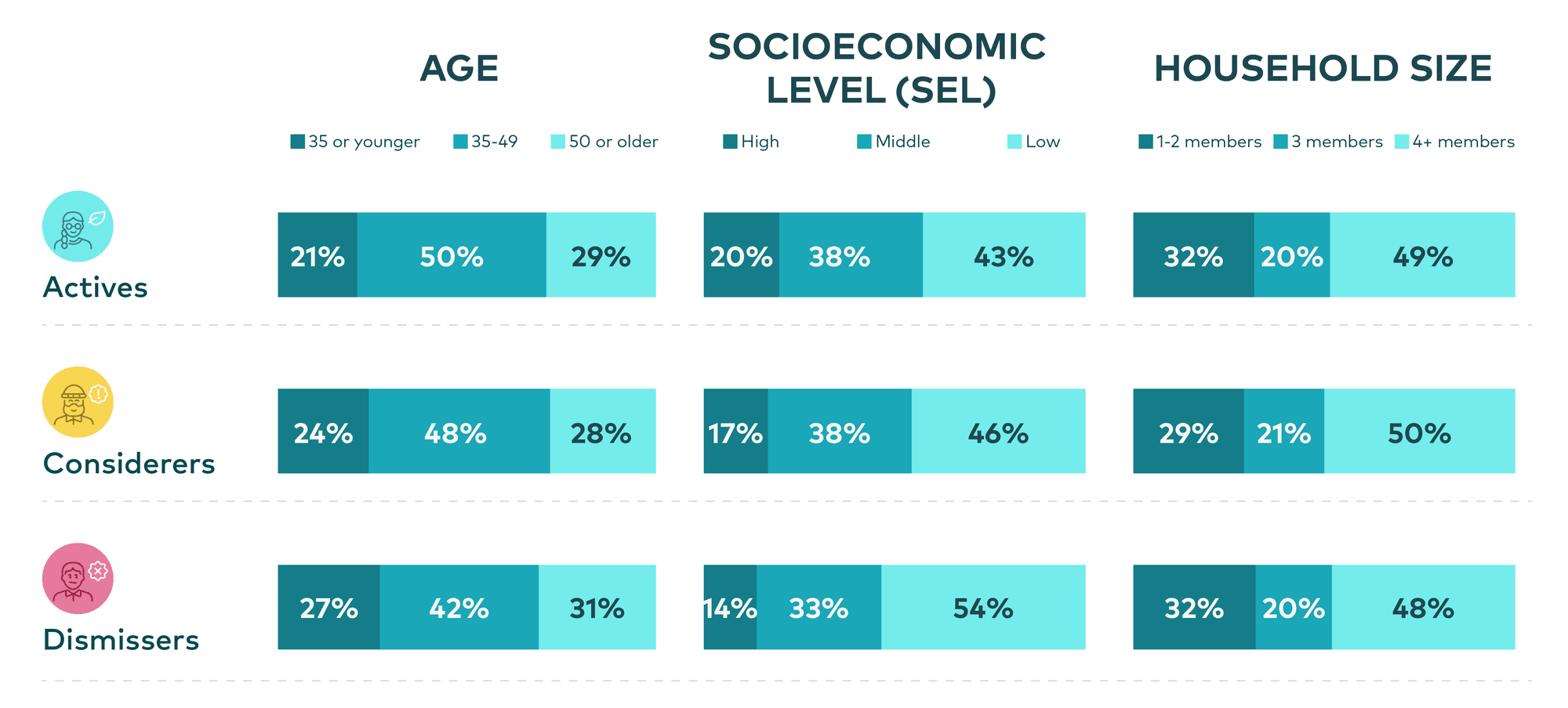 This means it is not a lack of interest, but rather the difficulty mentioned earlier in this study — along with different priorities. So much so that our data show that this group does not differ from the others in terms of age or household size. The only contrast lies in the socioeconomic level (SEL).