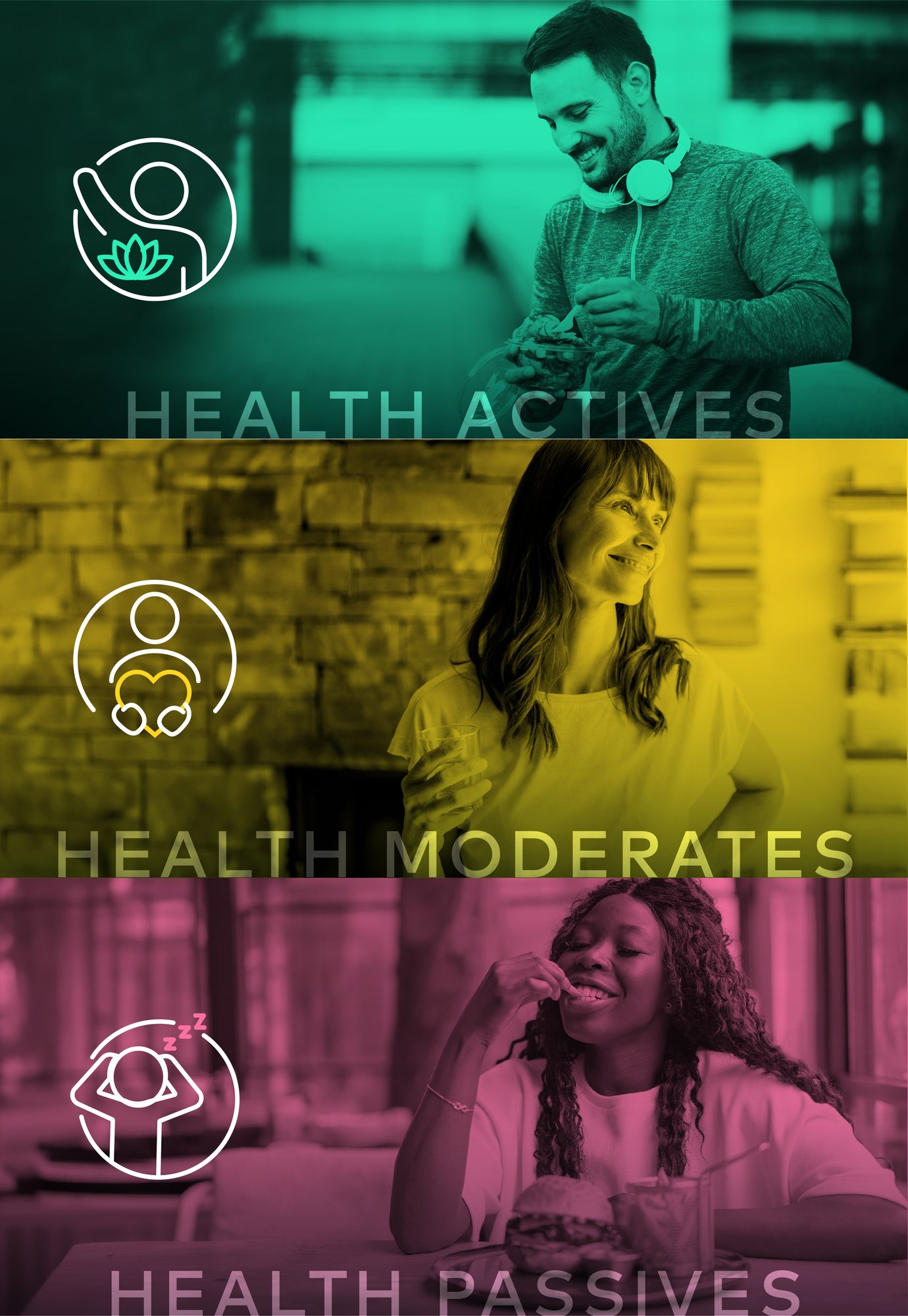 El camino hacia una vida más saludable puede entenderse a partir de tres grupos distintos de consumidores. Los Health Actives son los más comprometidos, ya que adoptan prácticas alimenticias y de estilo de vida para mantenerse saludables. Los Health Moderates buscan el equilibrio, incorporando algunos hábitos saludables, pero sin mucha consistencia. Por su parte, los Health Passives muestran poco interés por el tema.